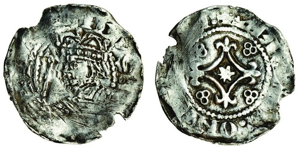 Henry I (1100-35), Penny, 1.27g, star in lozenge fleury type (BMC XIII), Winchester?, Lefwine?, crowned bust left holding sceptre before, rev. lef[pine?] on [pince?]i, star within quadrilateral, fleur on each tip, trefoil formed of annulets in each angle (N.869; S.1274), double struck on obverse, chips, fine