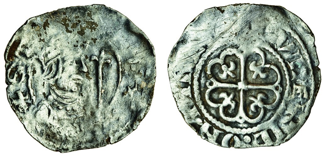 Stephen (1135-54), Penny, 1.36g, 'Watford' type (BMC 1), Worcester, Wulfric, crowned bust right, sceptre before, st[iefne:r]ex: rev. +[p]vlfric:on:pirec[:], cross moline, a fleur in each angle (Allen BNJ 2012, p.117; Mack 41c; N.873; S.1278), some scrapes and a small area of flaking to obverse, large flan, bust of typical Worcester style, nearly very fine for this, rare mint
