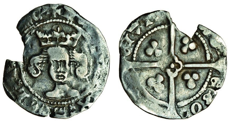 Henry IV (1399-1413), heavy coinage, 1399-1412, Penny, 1.08g, York, facing bust with broad face, round chin and thick hair, rev., long cross, quatrefoil with pellet at centre (Delmé-Radcliffe 76 - reverse die duplicate; N.1351; S.1722), edge chip, otherwise a very good example of this distinctive coinage of Henry IV with a good deal more facial detail than is usually seen, good very fine for this, rare