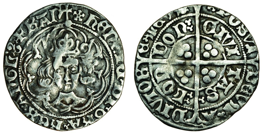 Henry VII (1485-1509), Groat, 2.49g, m.m. cinquefoil, class IIa, large facing bust, crown with two plain arches, rev. civitas london (N.1704; S.2195), scratches to obverse, good fine