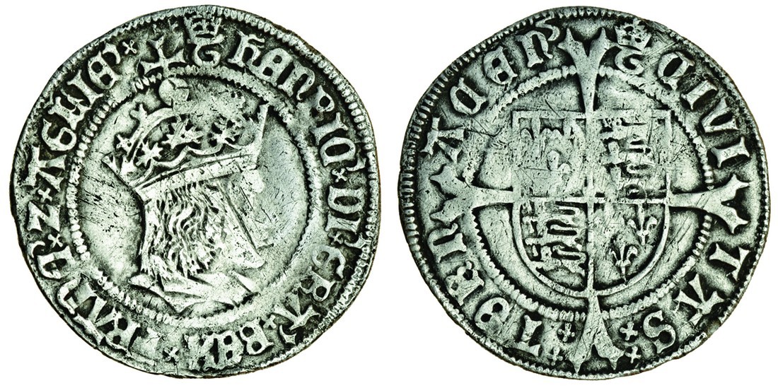 Henry VIII (1509-47), first coinage, 1509-26, Groat, 2.72g, Tournai, m.m. crowned T, crowned bust right, rev. civitas tornacen, shield over long cross fourchée (S.2317), slightly bent, scratches to bust, good fine, rare