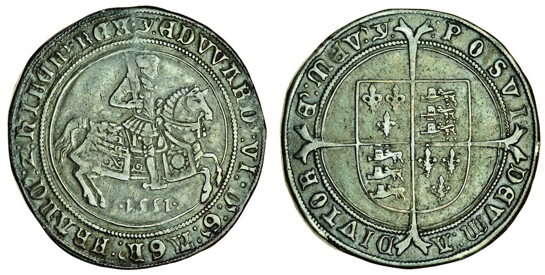 Edward VI (1547-53), fine issue, 1551-53, Crown, 30.75g, 1551, m.m. y, king, crowned and holding a sword, riding right, rev. shield over long cross fourchée (N.1933; S.2478), old cabinet tone, about very fine
