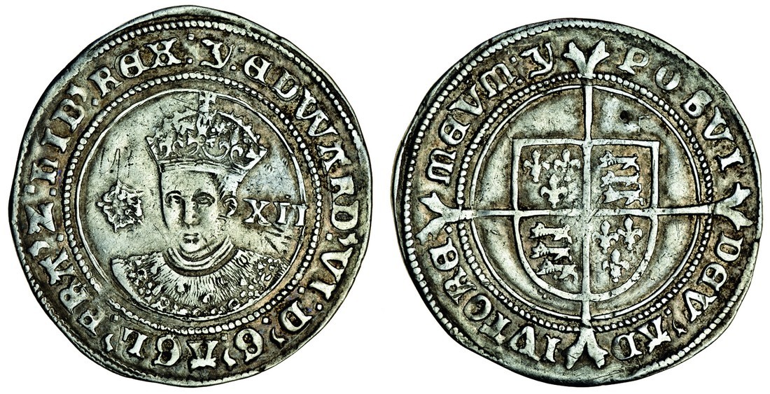 Edward VI (1547-53), fine silver issue 1551-53, Shilling, 6.00g, m.m y, crowned bust facing dividing rose and value, rev. shield over cross fourchée (S.2482), light scratches (graffiti?) on obverse, very fine