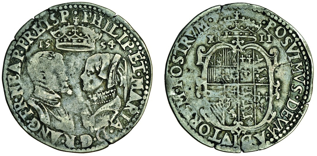 Philip and Mary (1554-58), Shilling, 5.82g, busts vis-à-vis, crown above, full titles, rev. crowned garnished shield, dividing mark of value (N.1967; S.2500), flan crack, edge splits, otherwise good fine or better