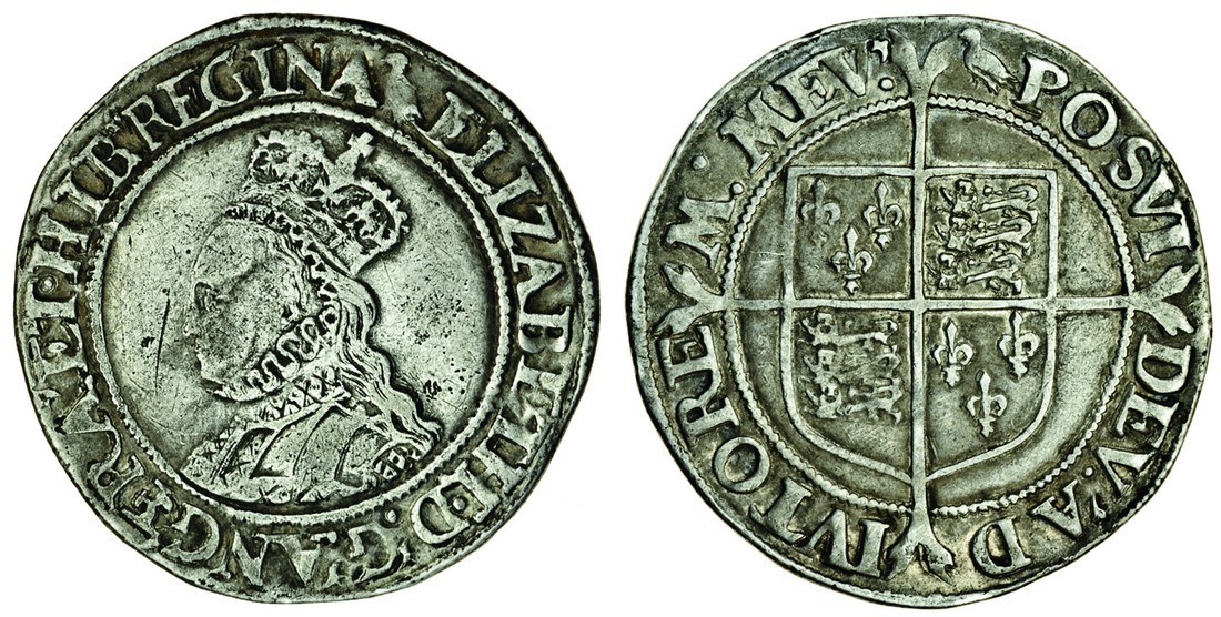 Elizabeth I (1558-1603), second issue, 1560-61, Shilling, 5.84g, m.m. martlet, crowned bust left, rev. shield over long cross fourchée (N.1985; S.2555), scratch before bust, good fine