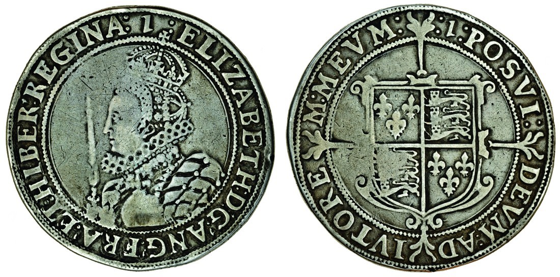 Elizabeth I (1558-1603), seventh issue, 1601-2, Halfcrown, m.m. 1, crowned bust, with ornate dress and holding sceptre and orb, left, rev. garnished shield over long cross fourchée (N.2013; S.2583), weakness on bust, edge knock at 3 o'clock about very fine