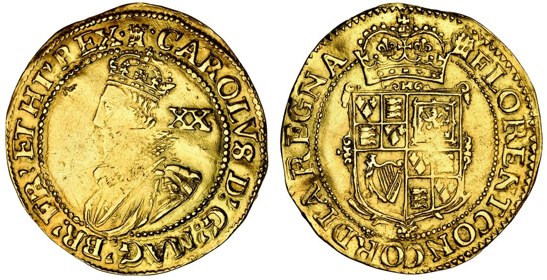 Charles I (1625-49), Unite, 8.93g, group B, m.m. castle/castle over negro's head, second crowned bust left in ruff, armour, and mantle, rev. crowned garnished shield (Schneider -; N.2148; S.2687), creased, edge flattened between 12 and 1 o'clock, previously cleaned, marks to obverse, weakness on bust, good fine