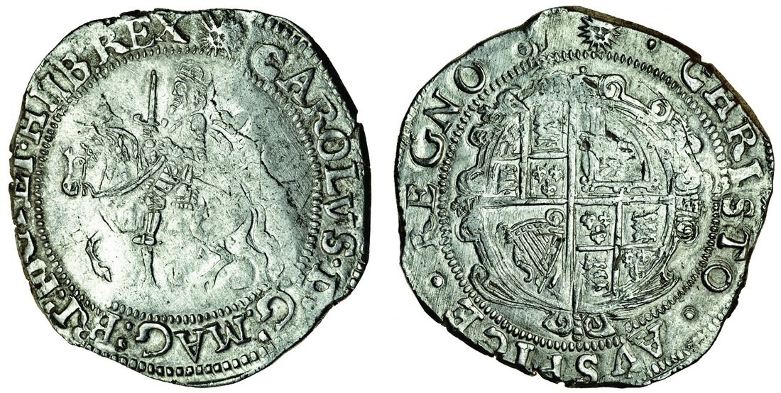 Charles I (1625-49), Tower mint under Parliament, Halfcrown, 14.54g, m.m. sun, king on horseback left, no groundline, type 3a3, rev. oval garnished shield (N.2213; S.2778), cleaned, very fine