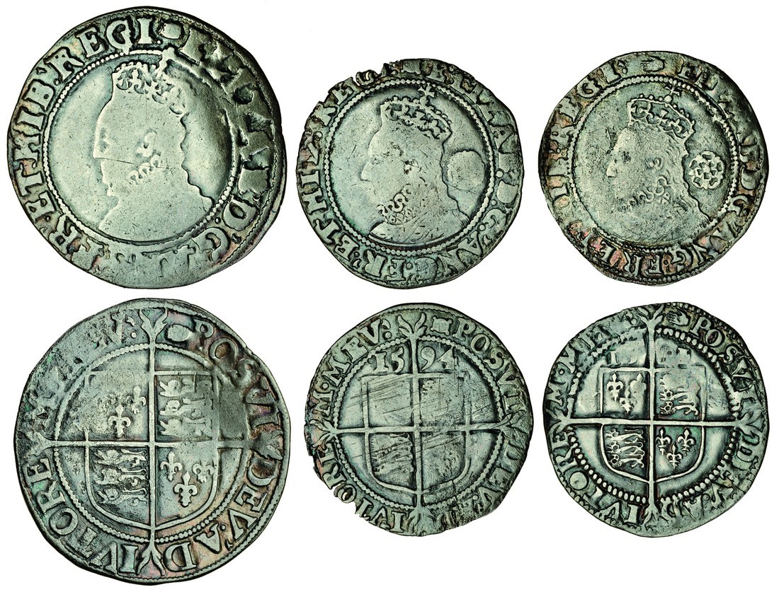 Elizabeth I (1558-1603), Shillings (10), m.m.s cross crosslet, martlet (2), escallop, tun (4), key, and illegible (1), Sixpences (27), m.m.s pheon (5), rose (2), portcullis (3), coronet, ermine (5), cinquefoil (3), cross (2), escallop, crescent, hand, tun (2), and woolpack, Groat, m.m. cross crosslet, all cleaned, some creased, some scratched, fair to fine (38)
