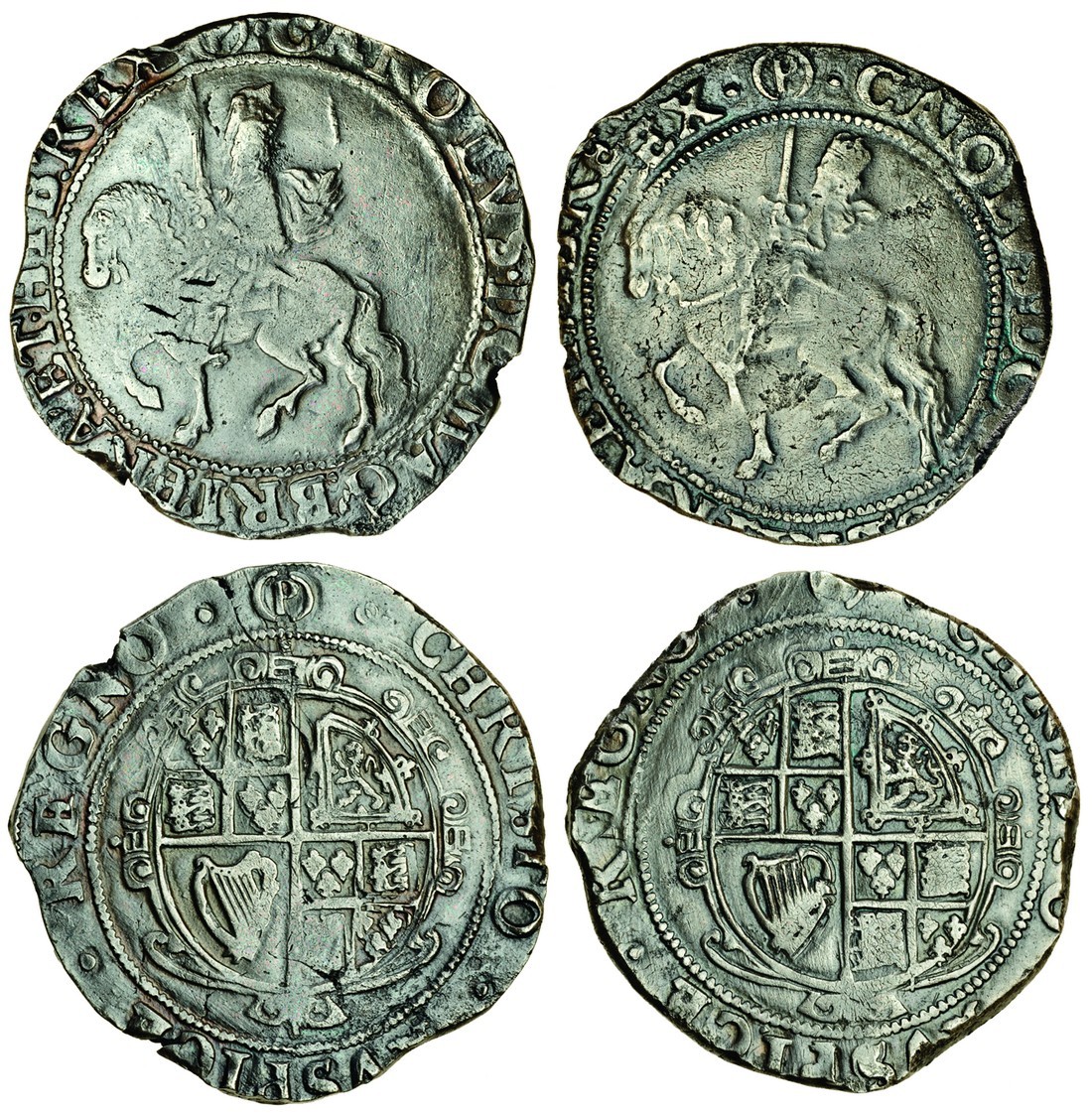 Charles I (1625-49), Tower under Parliament, Halfcrowns (2), 14.71g, group III , type 3a3, m.m. P in brackets, (Brooker 354; N.2213; S.2778), 15.18g, group III, type 3a3 (cf Brooker 355-56; N.2213; S.2778), both previously cleaned, first, double striking, good fine, second, edge damaged, light double striking, good fine (2)