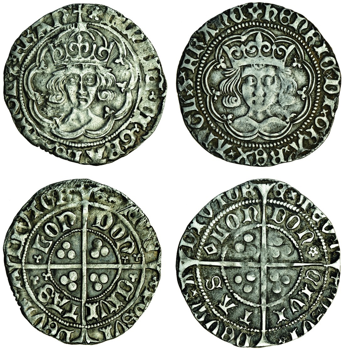 Groats (2), Henry VI, first reign, 3.77g, rosette-mascle, 1430-31, London, angl' (N.1445; S.1858), centres weak, nearly very fine, Henry VII, 2.99g, class IIa, m.m. cinquefoil (N.1704; S.2195), pleasing detail to bust, very fine (2)