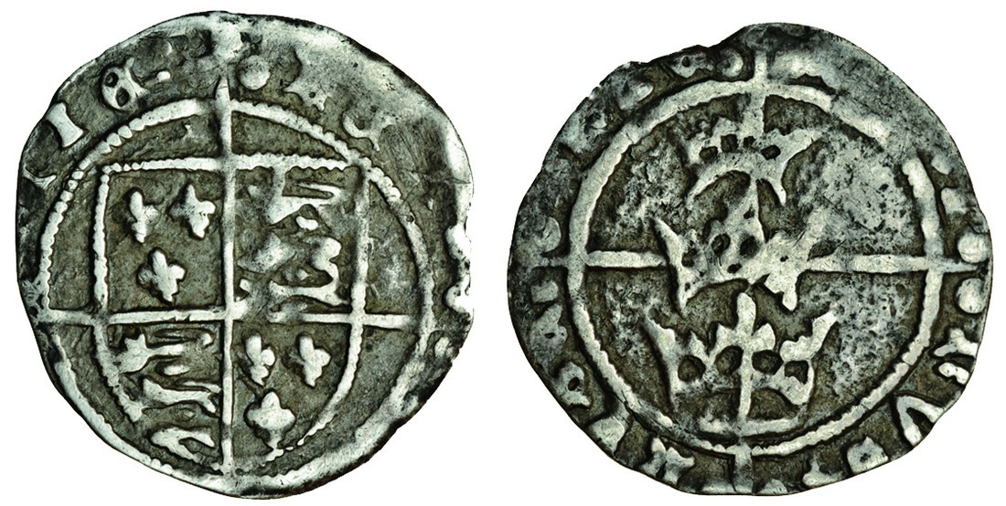 Ireland, Henry VII (1485-1509), Groat, 1.73g, early three crowns issue, Dublin, shield over long cross with pellet terminals, rex an[glie fran]cie, rev., three crowns over long cross with pellet terminals, d[om]invs hybernie (S.6414), off-struck on obverse, nearly very fine