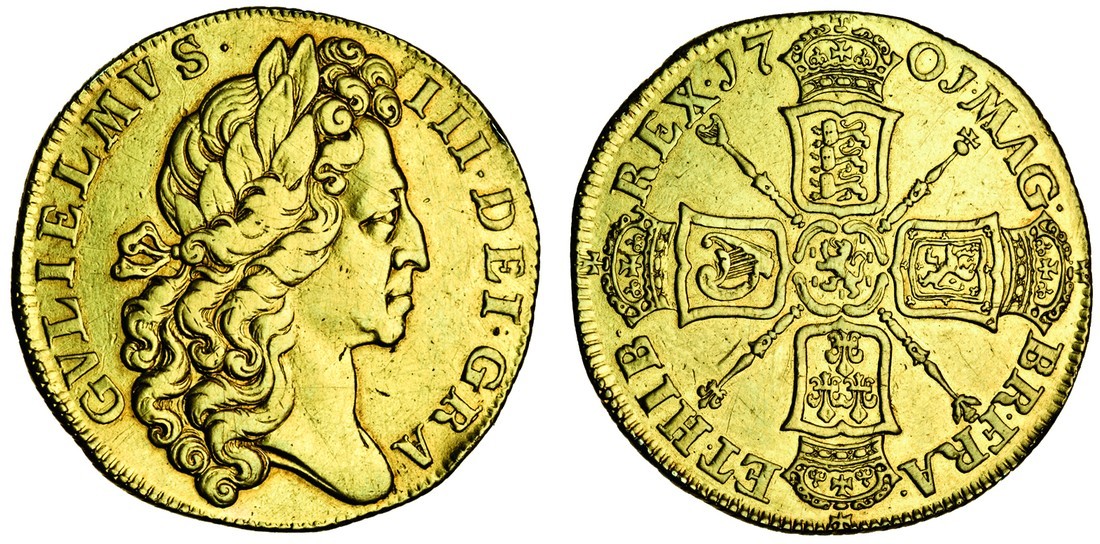 William III (1694-1702), Two-Guineas, 1701, 'fine work', laureate bust right, rev. four crowned shields cruciform, sceptres in angles (MCE 173; S.3457), from a mount, cleaned, about very fine