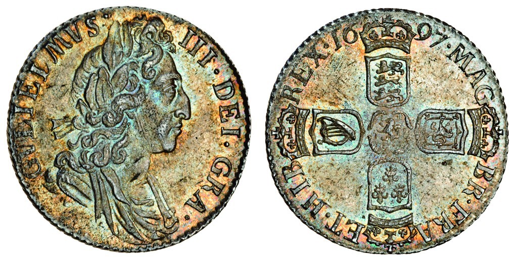William III (1694-1702), Sixpence, 1697, third laureate draped bust right, rev. four crowned shields cruciform (ESC 1566; S.3538), extremely fine, lustrous and toned