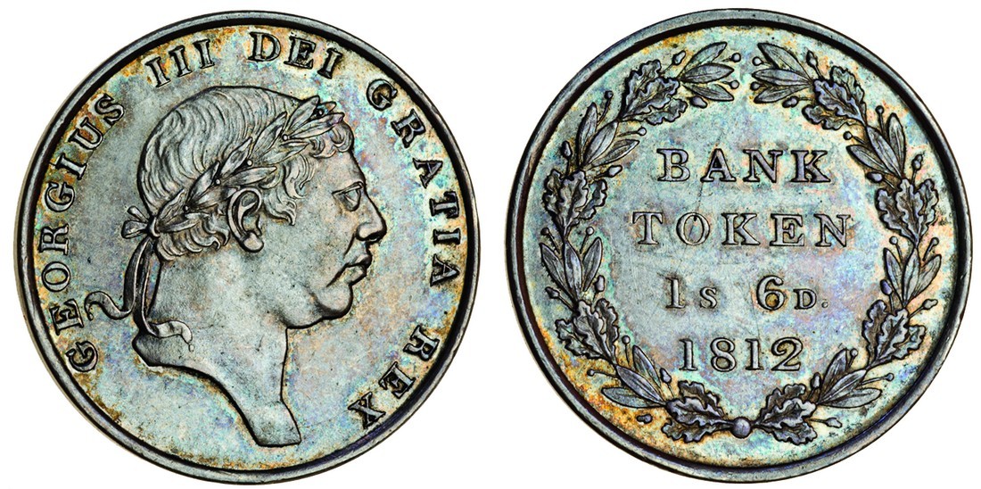 George III (1760-1820), Bank Token Eighteenpence, 1812, laureate head right, rev. value in wreath (ESC 972; S.3772), good extremely fine, lightly toned