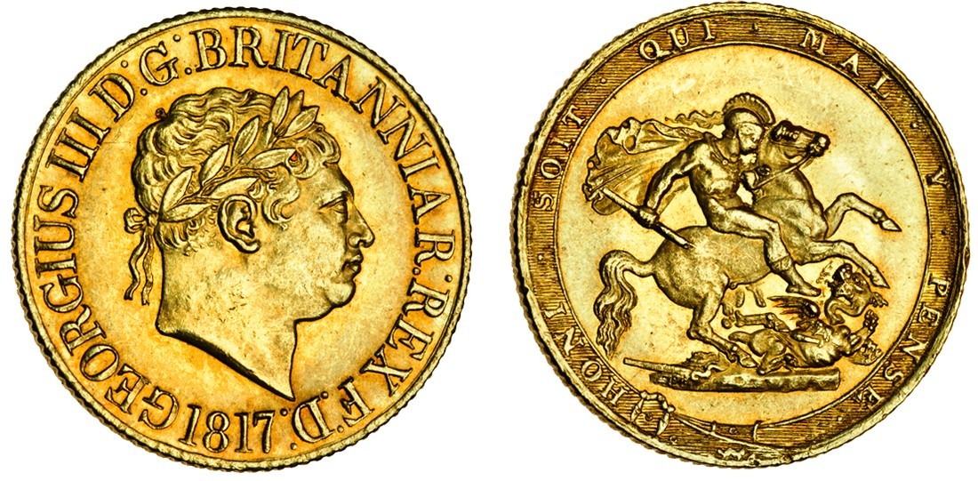 (g) George III (1760-1820), Sovereign, 1817, laureate head right, rev. St George and dragon within garter (Marsh 1; S.3785), toned, edge knocks, extremely fine