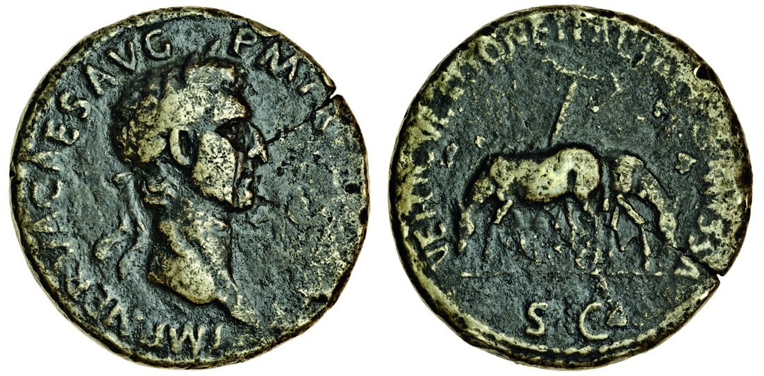 This coin records the abolition of impositions on private citizens for the provision of transport for the imperial postal service set up by Augustus
