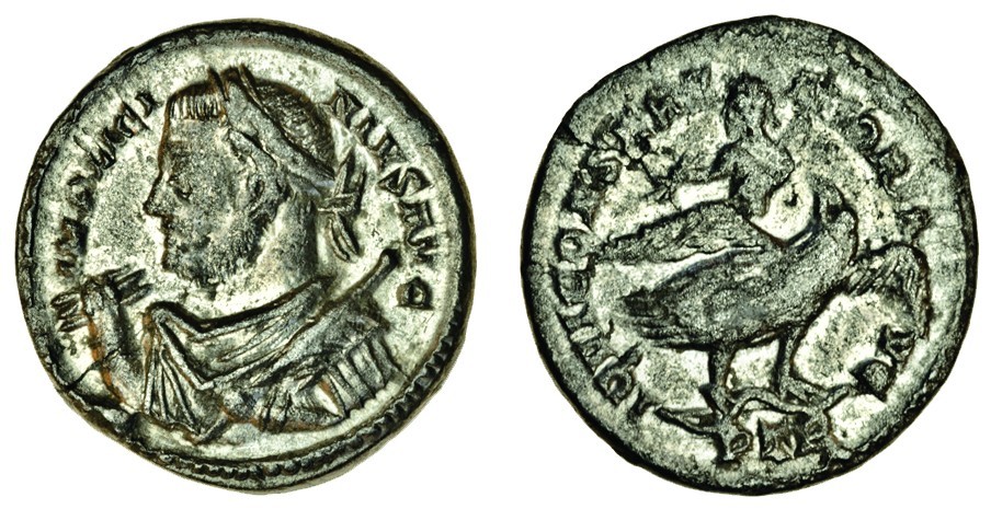 (x) Licinius I (AD 308-324), AR Argenteus, 3.14g, Trier, 309-313, imp licinivs avg, laureate bust of Licinius left, cuirassed, holding thunderbolt, sceptre over left shoulder, rev. iovi conservatori avg, Jupiter right, head left, right hand holding thunderbolt and left hand holding sceptre, seated on eagle standing right with wings spread, mint-mark ptr (RIC 825), small flan crack, very fine, rare