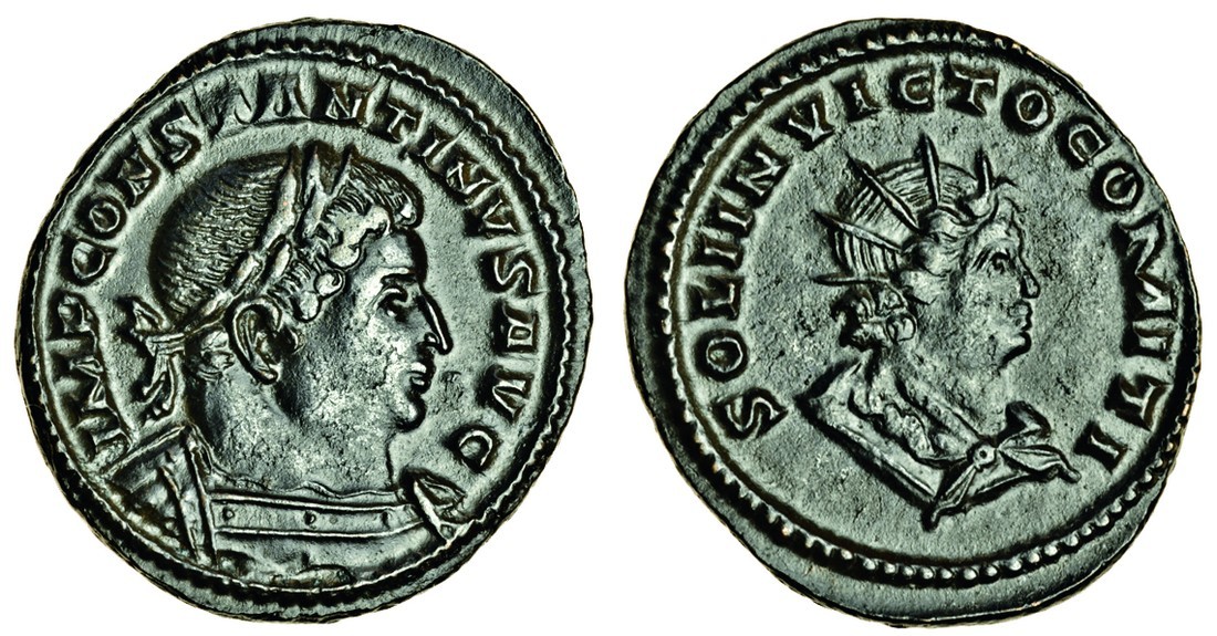 Constantine I (AD 307-337), AE Follis, Trier, 310-313, laureate, cuirassed bust right, rev. SOLI INVICTO COMITI, radiate and draped bust of Sol right (RIC 890), extremely fine