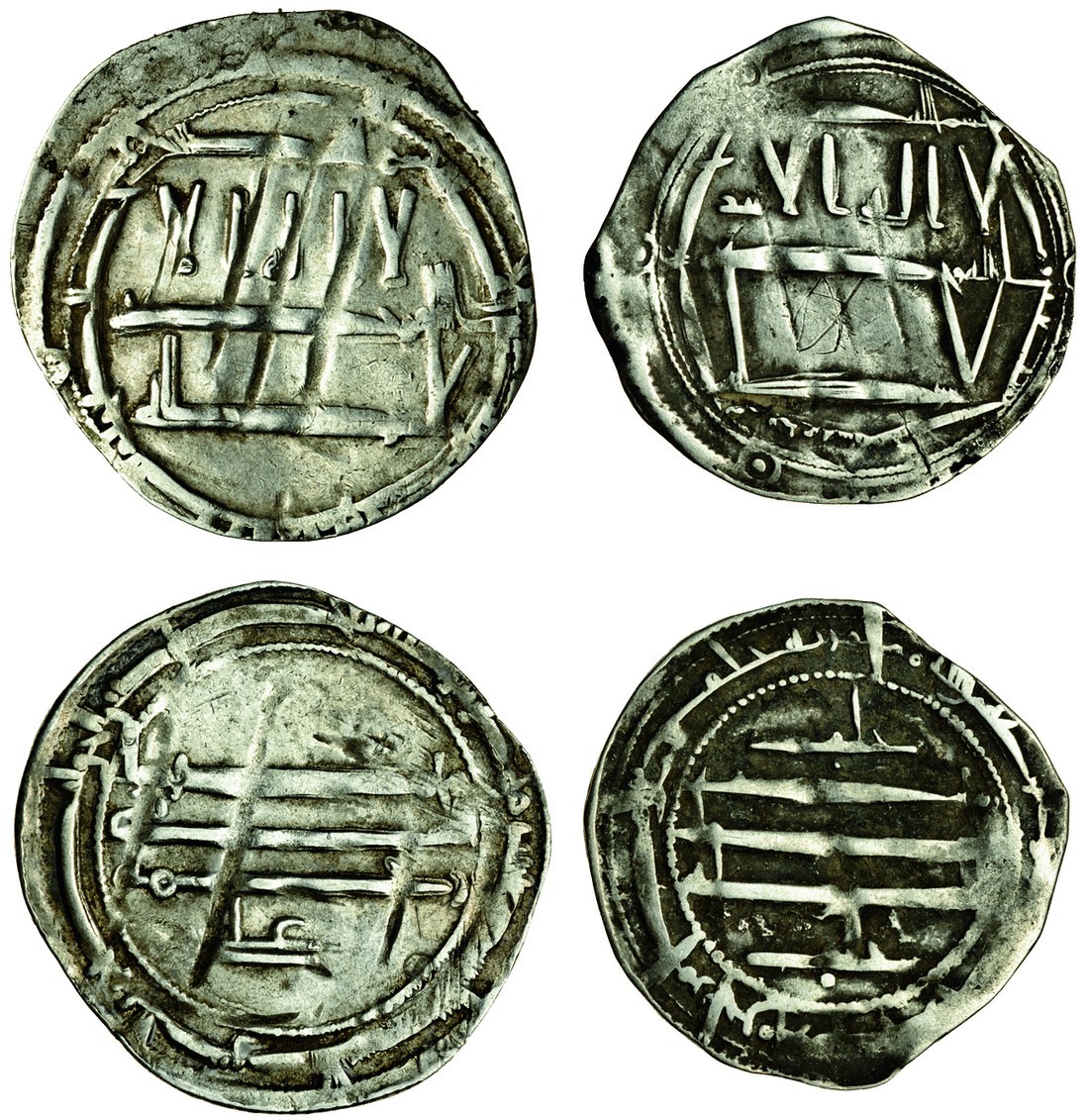 (x) Kharijite of Tudgha, Khalaf bin al-Muda' (791-92), Dirham, Tudgha, AH176 (A.430); Idrisid, Idiris II (791-828), mint unclear, possibly Tudgha, AH181 (A.420); Aghlabid, Ibrahim I (800-11), Dirham, 2.82g, Ifriqiya, date unclear, possibly AH185 (A.435), good fine (3)
