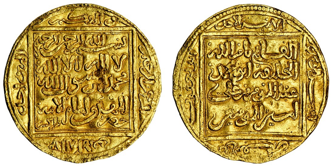 Muwahhid, Abu Ya'qub Yusuf I (1163-84), AV ½-Dinar, 2.29g, first series, Hadr Marrakush, undated (Hazard 488; A.483), a small dent in obverse field, very fine, rare with mint
