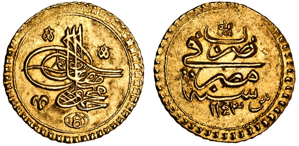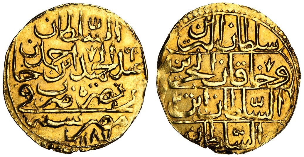(x) Ottoman, Mahmud I, AV Zinjirli Altin, Misr, AH1143 vii; Mustafa III (1757-74), AV Zeri Mahbub, Misr, AH1171 xliv; Abdul Hamid I (1774-89), AV Zeri Mahbub, Misr, AH1187 / 2, about extremely fine (KM.91, 105.1, 127), the first and last about extremely fine, the second holed and plugged at top, very fine (3)