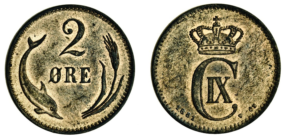 Denmark, Christian IX (1863-1906), AE 2-Öre, 1881 cs, crowned monogram, rev. value above porpoise and barley ear (KM. 793.1), extremely fine, scarce in this condition