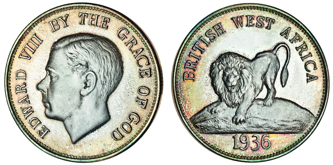 British West Africa, Edward VIII, silver proof commemorative Crown by the Pobjoy Mint, head left, rev. lion (KM XM1), uncirculated