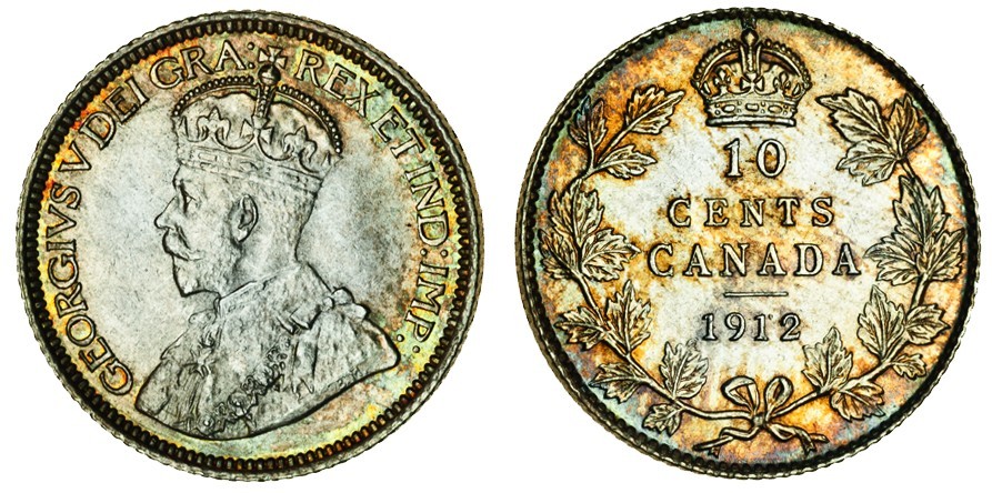 Canada, George V (1910-36), 10-Cents, 1912, crowned bust left, rev. value in wreath (KM.23), toned uncirculated
