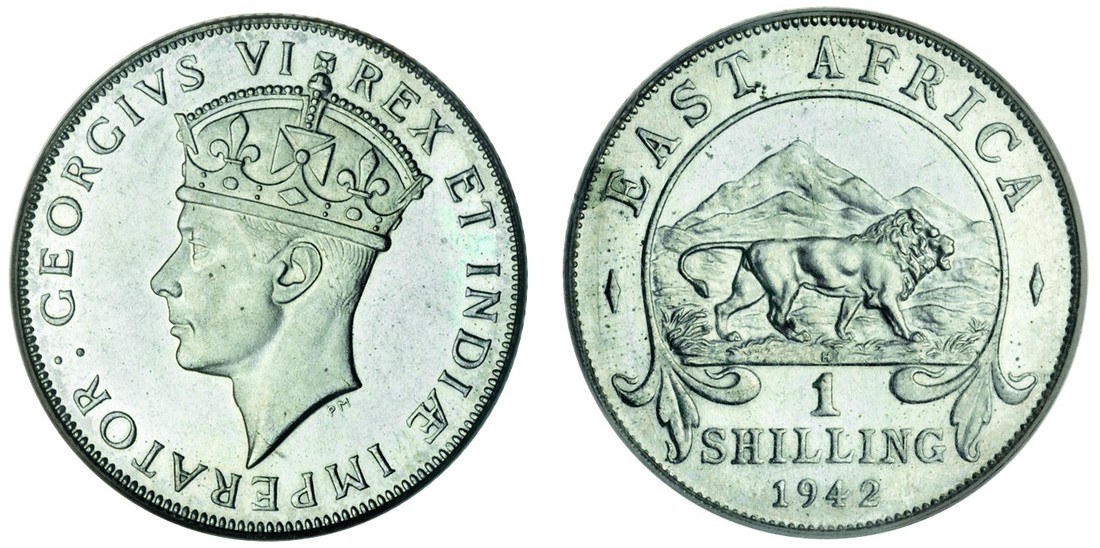 (x) East Africa, George VI (1936-52), proof Shilling, 1942 H, crowned head left, rev. lion, value and date below (KM.28.1), in PCGS holder graded SP66