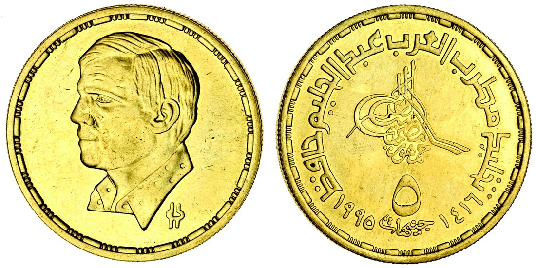 (x) Egypt, Arab Republic (1971-), gold Five-Pounds, 1995, singer Abdel Halim Hafez (F.178; KM 774), extremely fine