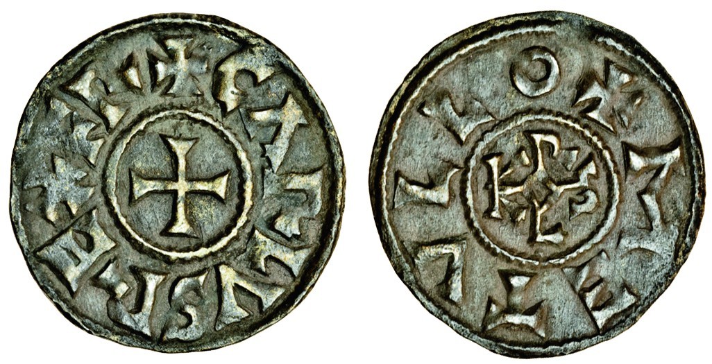 France, Carolingian, Charles the Bald (840-77), Denier, 1.63g, Melle, +carlvsrexfr, plain cross within inner circle, rev. Karolus monogram within inner circle, +metvllo (MG 1063; Prou 692-696), toned, good very fine