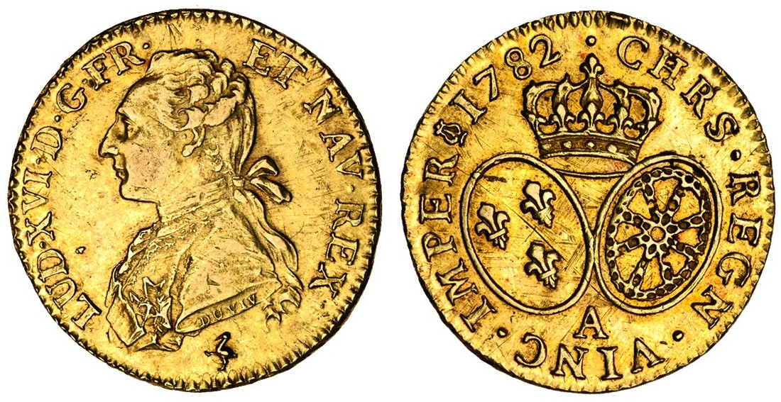 France, Louis XVI (1774-92), Louis d'or, 1782 A, Paris, bust left, point below the d of lud (second semestre), rev. crown over two oval shields (F.471), nearly extremely fine