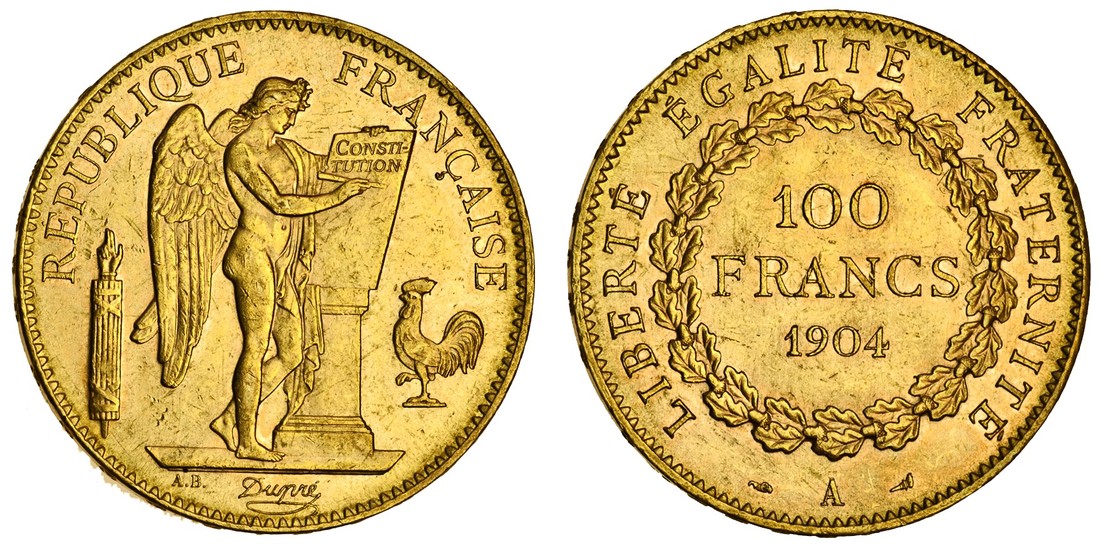 (g) France, Third Republic (1871-1940), 100-Francs, 1904 A, Paris, winged Genius, rev. value and date in wreath (F.590), good very fine