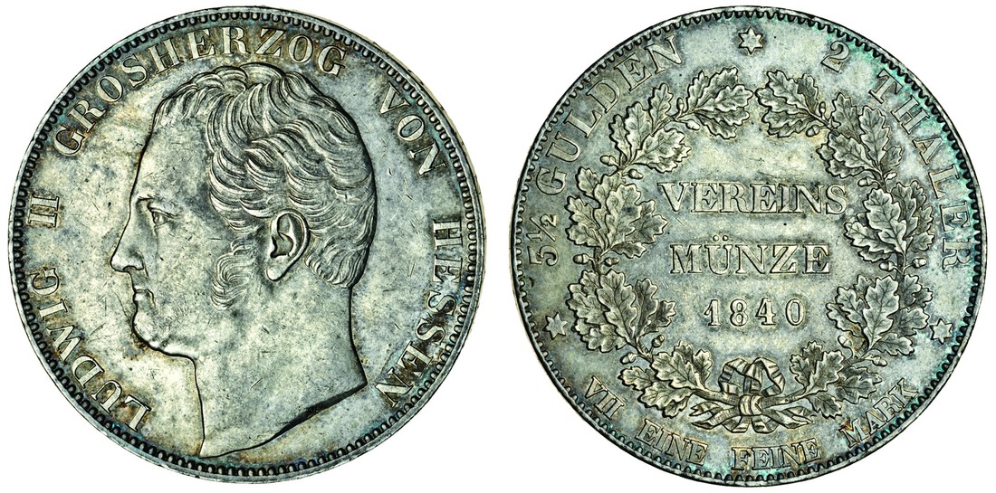 (x) Germany, Hesse-Darmstad, Ludwig II (1830-48), Double-Taler, 1840, head left, rev. inscription within wreath (Dav.702; KM.310) toned, hairlines, marks on obverse, about extremely fine