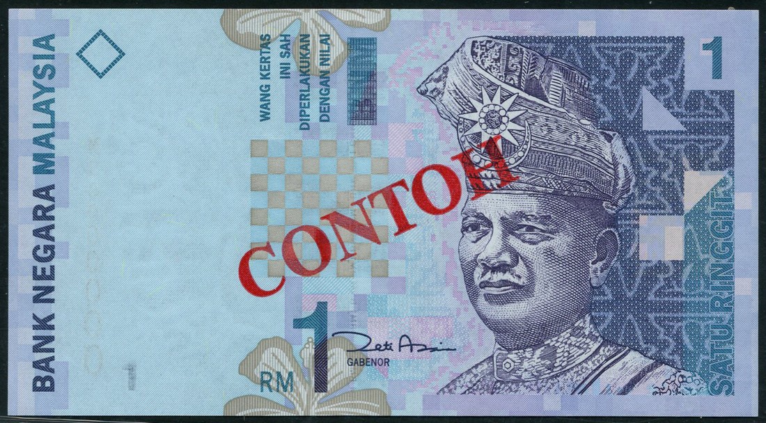 Bank Negara, Malaysia, specimen 1 ringgit, ND (2000-), zero serial numbers, pale blue and multicoloured, Tunku Abdul Rahman at right, Aziz signature low centre