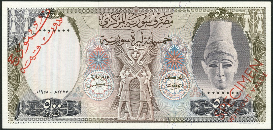(x) Central Bank of Syria, a specimen set of the 1958 series comprising 1,5,10,25,50,100 and 500 livres