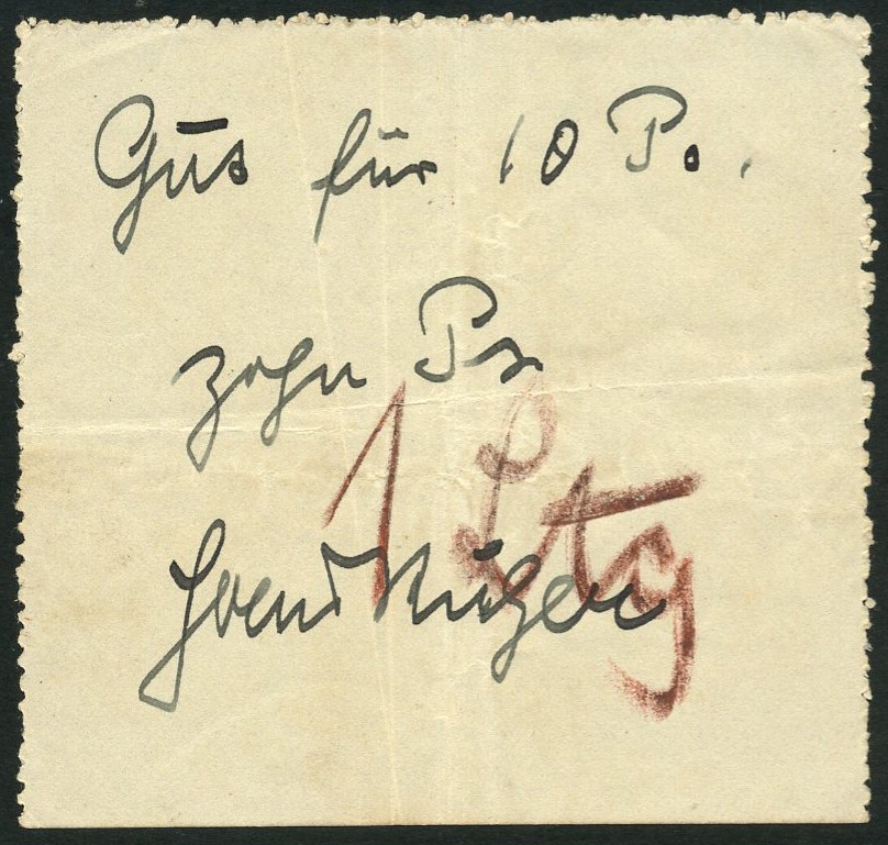 (x) Georgische Legion, an early hand written note for 10 piastres, ND (1916), black pen on white paper, perforated edges