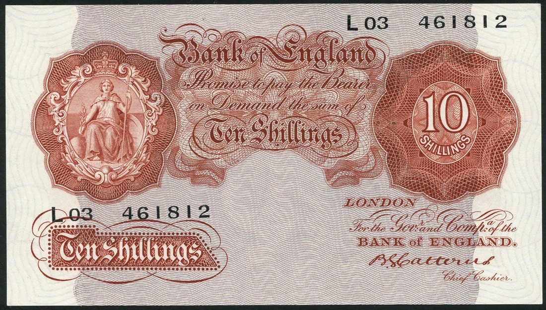 (x) Bank of England, B.G.Catterns, 10/-, ND (1930), serial number L03 461812, red-brown, Britannia at left, value at right