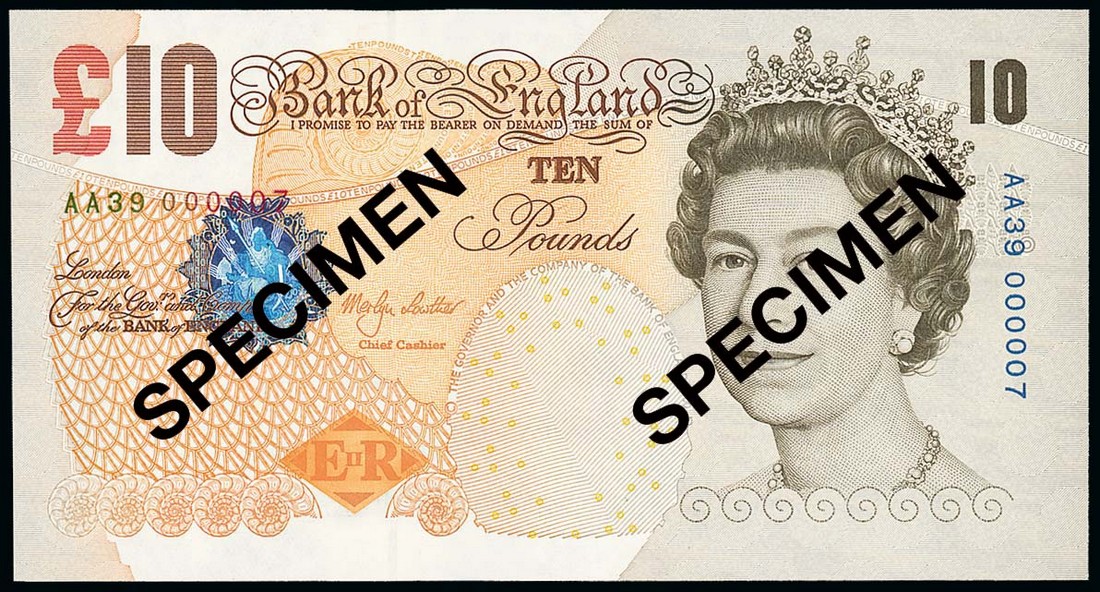 Bank of England, M.V. Lowther, £10 (3), serial numbers AA39 000007/8/9, also £10 (2), prefix AJ 40 (2), £10 (2), serial numbers LL03 921926/663, all brown, Elizabeth II at right