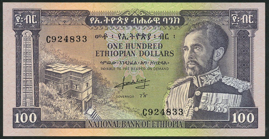 (x) National Bank of Ethiopia, $100 (4), ND (1966), all prefix C, violet and multicoloured, Emperor Haile Selassie at right, reverse violet and white, lion at centre