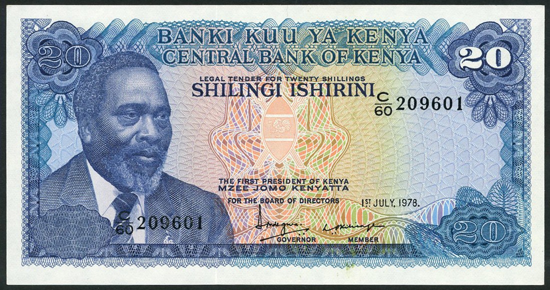 Central Bank of Kenya, 5 shillings (200), 10 shillings (100) and 20 shillings (100), all 1978, all with Kenyatta at left, value at top corners and low right