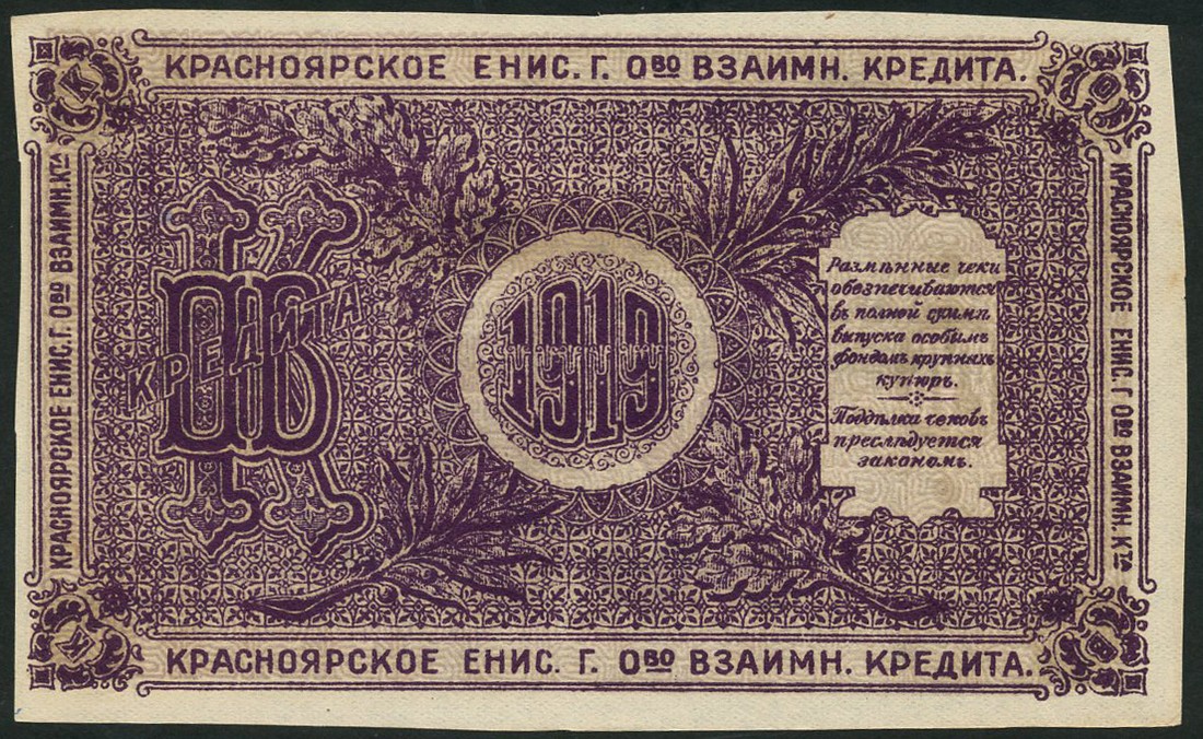 Krasnoyarsk Territory, Russia, 25 rubles, 1919, black on purple and grey underprint, (Pick S970a), irregular cut margins, pencil annotation top right, very fine or better