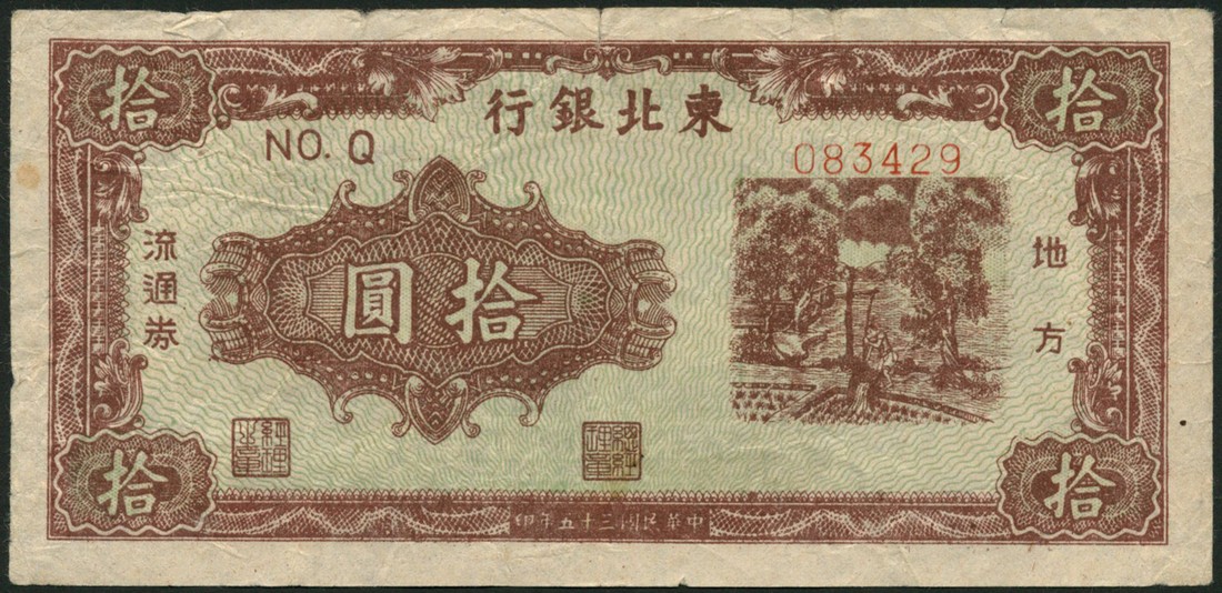 Tung Pei Bank of China, group of notes (4), including 10 yuan, 1946, brown and pale green, irrigation scene at right