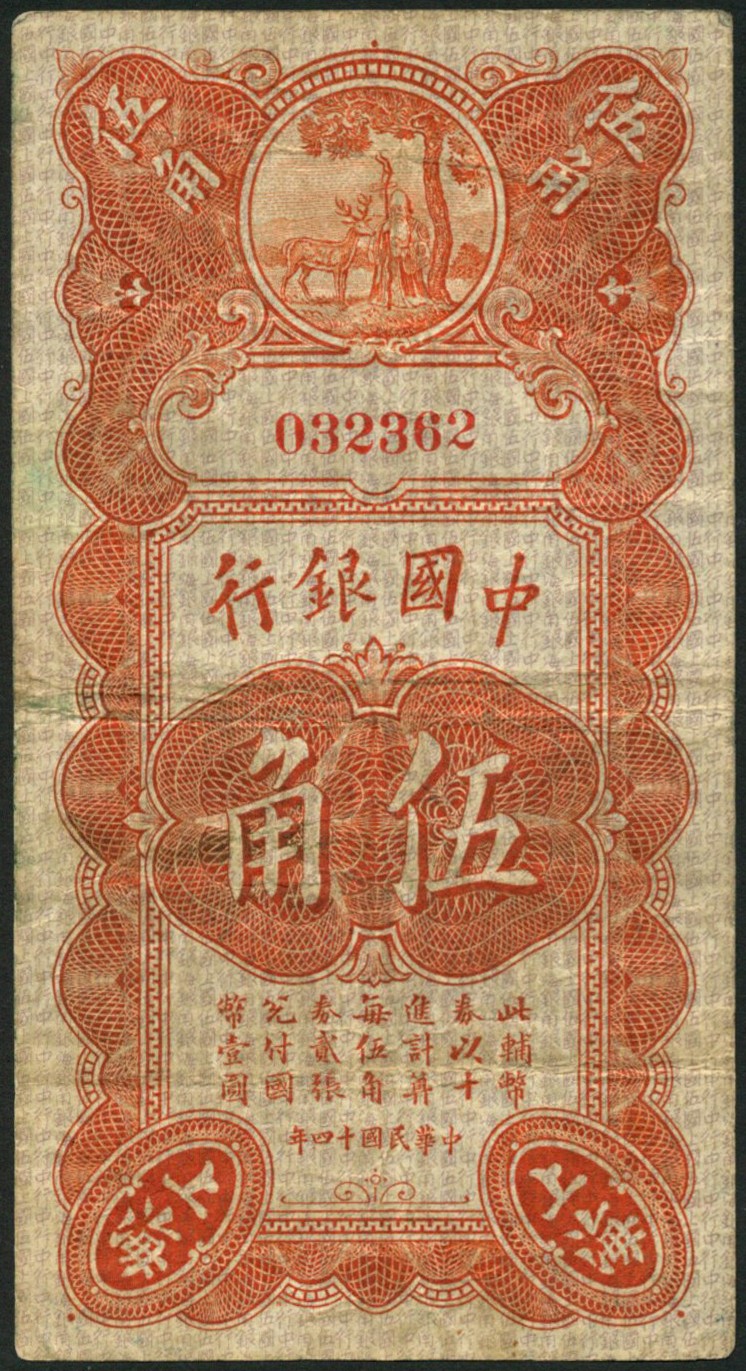 Bank of China, 10, 20 and 50 cents, Shanghai, 1925, all red serial numbers (Pick 63,64,65), very fine (3)