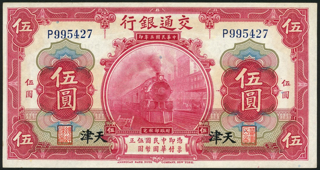 Bank of Communications, 5 yuan (2) , 1914, Shanghai, Shantung, 10 yuan (2), Shanghai/Kansu and Tientsin, also 10 yuan, Amoy, all 1914