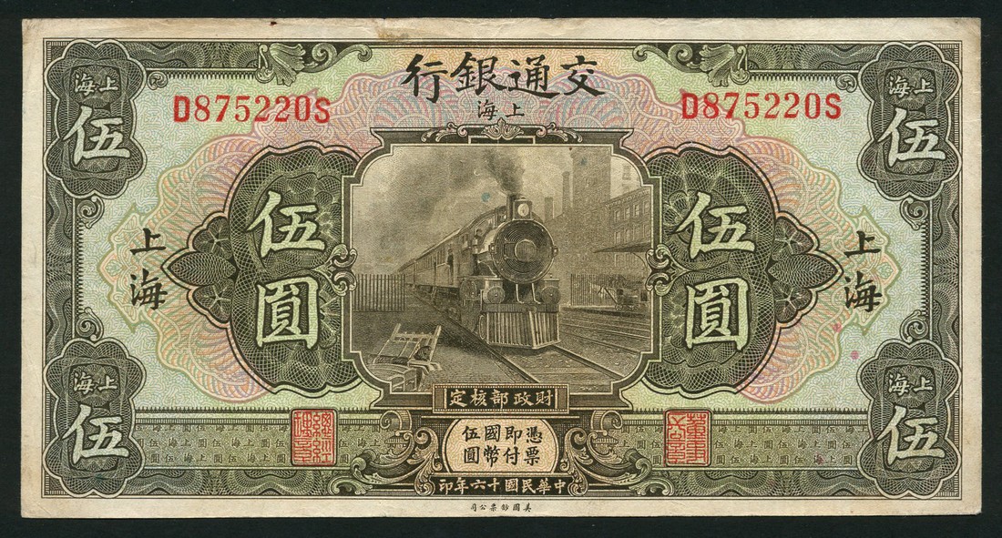 Bank of Communications, a selection comprising 5 yuan, Shanghai, 1927, 5 yuan, Tientsin, 1927, 1 yuan, Shanghai, 1931, 1 and 5 yuan, 1935, 5 yuan (3), 10 yuan (3), 1941