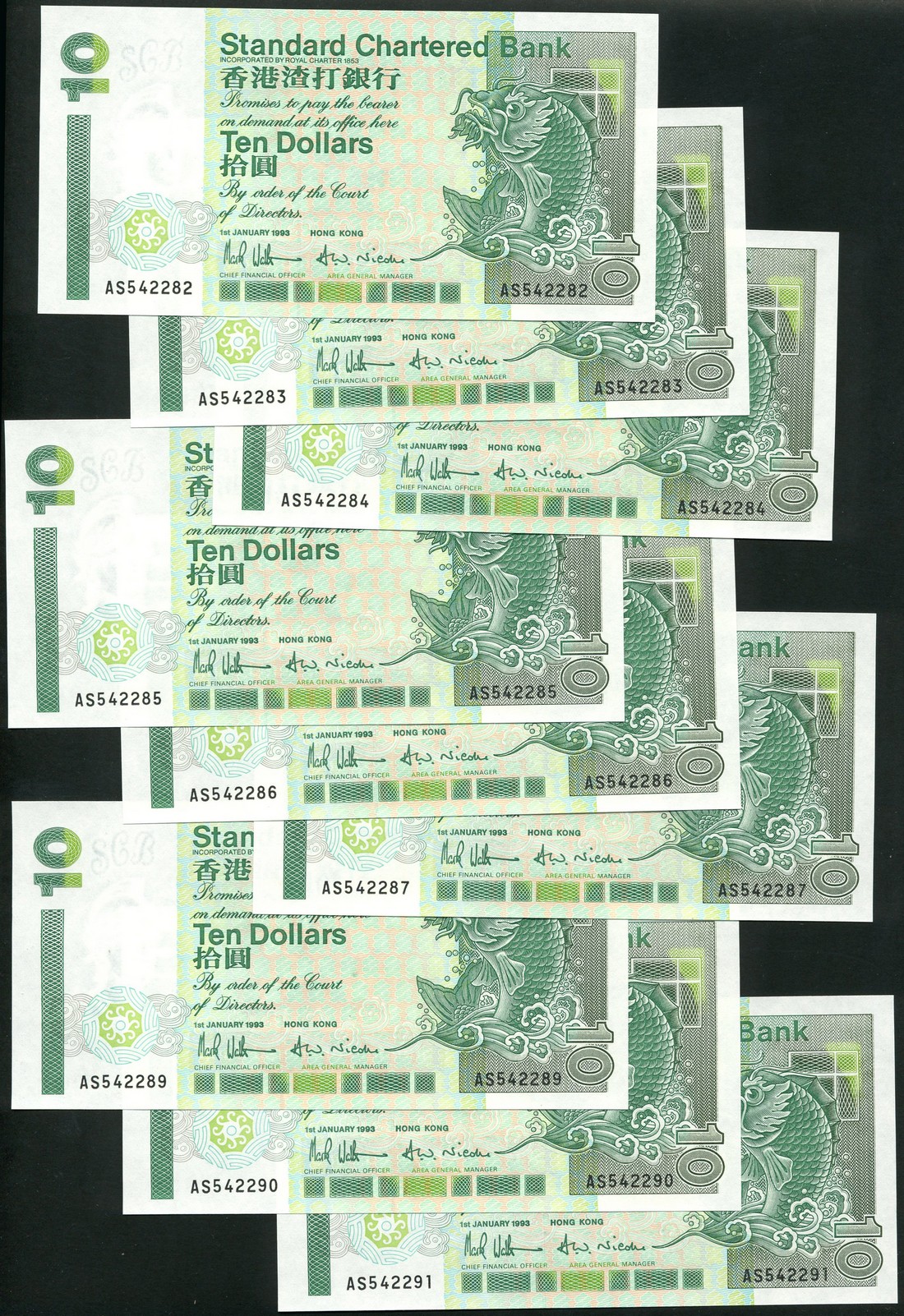 Standard Chartered Bank, $10 (9), 1993, green, fish at right