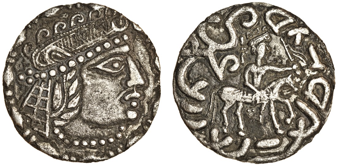 Central Asia, Silk Road, Khwarezm (Afrighid Dynasty), King Brawik (early 7th century), reduced Tetradrachm, 5.10g, crowned bust of king right, rev. horseman standing right with legend around mr'y mlk (Ramik, king of kings) (Vainb: II, Mitch 500a), very fine, unusually good condition for type