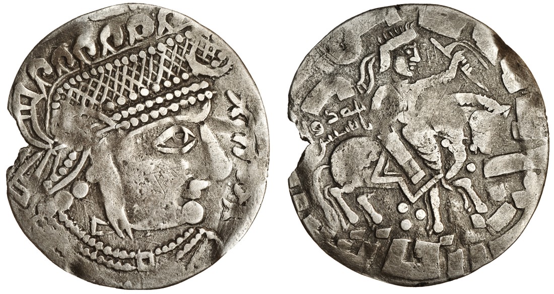 Central Asia, Silk Road, Governors of Khwarezm, al-Fadl bin Sahl (late 8th-early 9th century), Hemi-Drachm, 1.74g, crowned bust of king right, rev. horseman riding right, legend above back lillah dhu'l-riyasatayn (cf. Rtveladze 49; Mitch 500b), small part of edge missing, fine, scarce